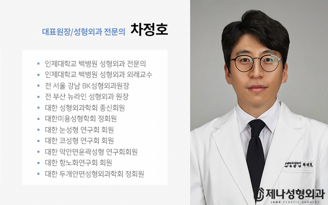 아름다운 당신을 더욱 아름답게 만드는 첫걸음. 언제나 아름다운 당신과 함께, 제나성형외과입니다. 풍부한 경험과 수술 노하우를 가지고 계신 성형외과 전문의 의료진이 있는 제나성형외과는 항상 환자와의 소통을 중시하며, 상담부터 후관리까지 담당 의료진이 함께하는 '책임'을 중요시하는 병원입니다.